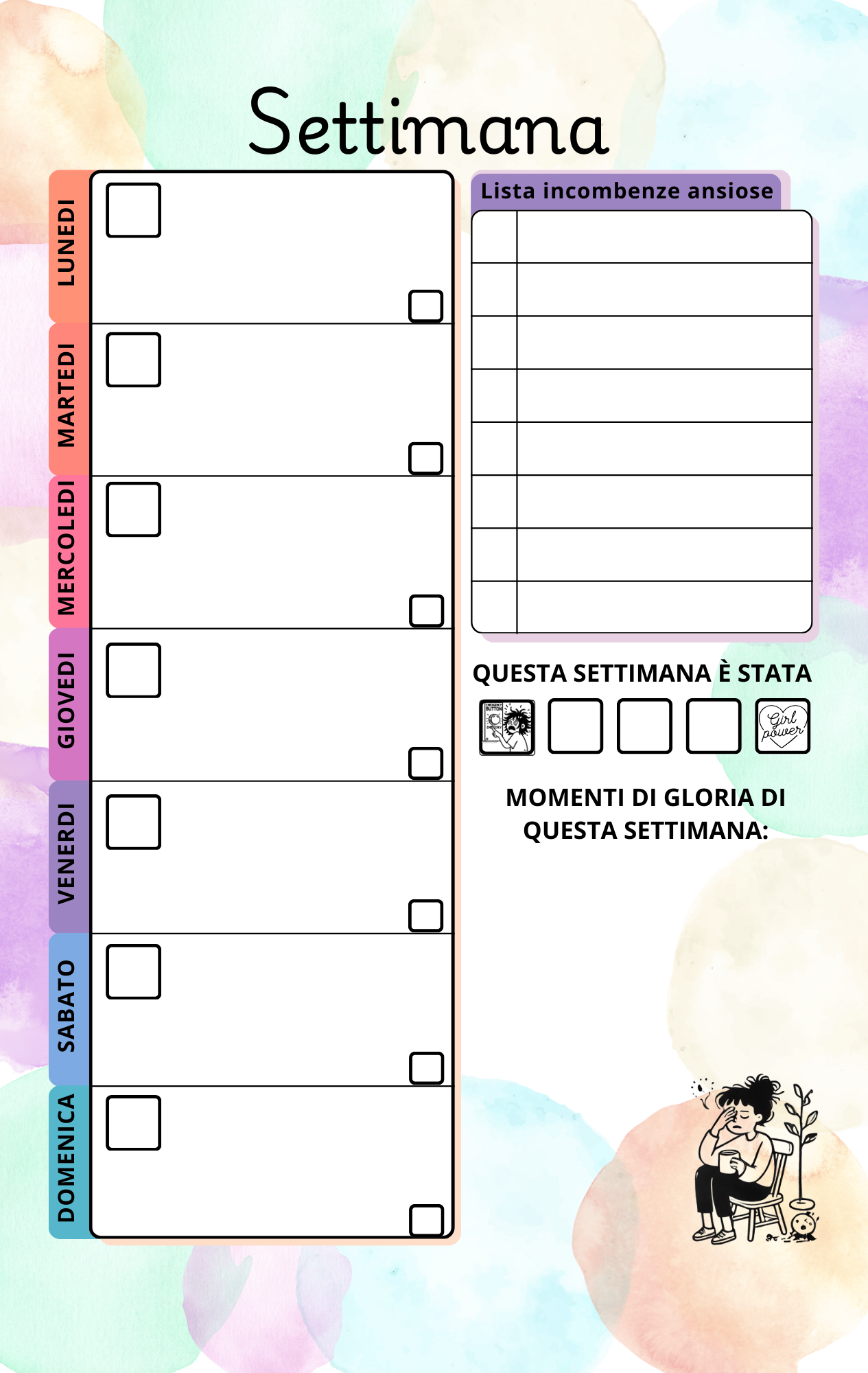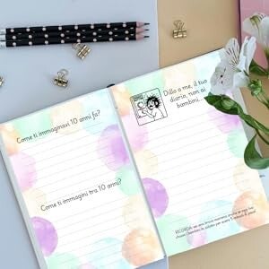 Ma non troverai solo il classico planner settimanale, come quello che ti regala la banca, ma un vero e proprio diario emotivo e creativo, in cui elaborare i tuoi stati d’animo, sogni e ogni tuo progetto...per poterlo poi sfogliare in futuro insieme ai tuoi figli e raccontare loro “Chi era mamma?”.